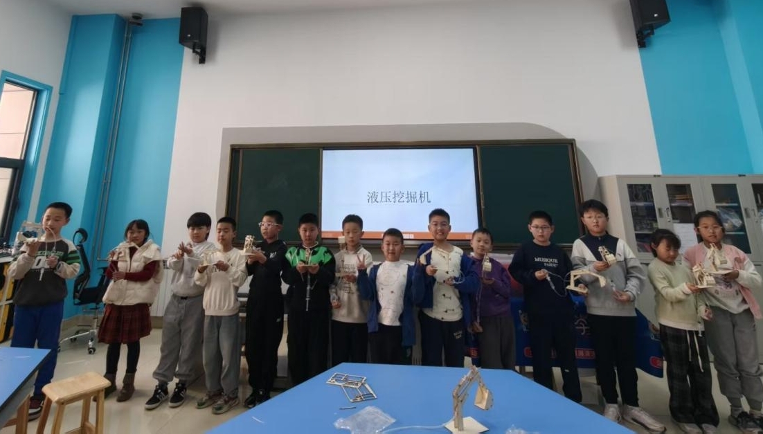 动手实践是此次活动的核心亮点。创意工坊内,“会‘工作’的小油泵”“自制挖掘机”两大主题活动,让孩子们在亲手组装模型中,分别掌握气压差、帕斯卡定律等科学原理,体验从理论到实践的成就感。