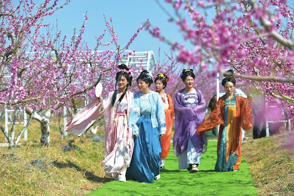 德城区黄河涯镇的第十六届桃花节同样玩出了新花样。除了传统的赏桃花、看演出,不少游客身着汉服,在花间拍照打卡,桃园附近还有马术、射击、垂钓等体验项目。市民赵先生带着一家三口体验了马术骑行:“孩子第一次骑马,兴奋得手舞足蹈,这样的赏花体验从没有过。”