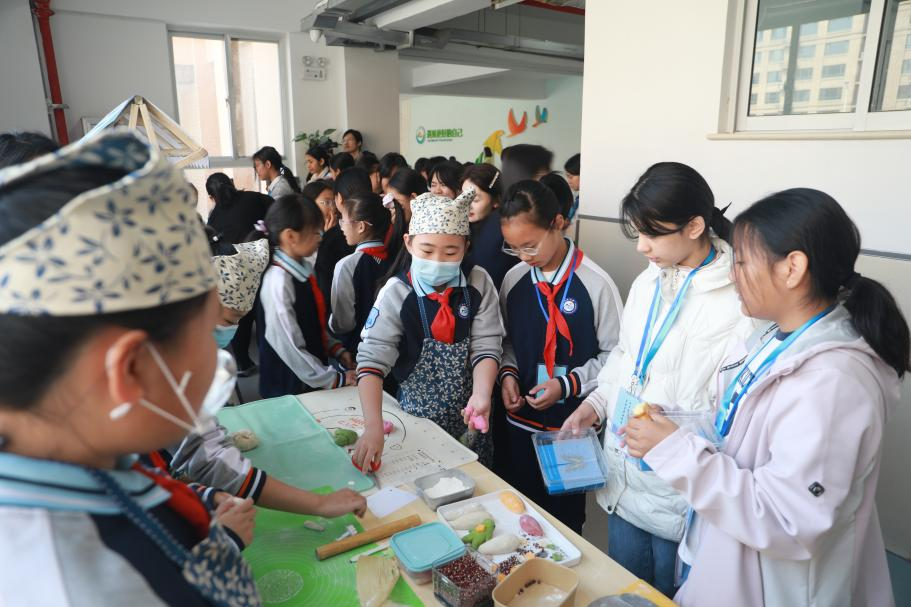 在峰山小学,香港师生一行参观了校园走廊文化,逛“大集”、尝美食,观看传统文化表演,沉浸式感受校园文化氛围,领悟中华优秀传统文化的独特魅力和蕴含的家国情怀。两校学生还围绕校本课程体验开展互动交流,在动手实践、相互协作中加深了解、增进友谊。