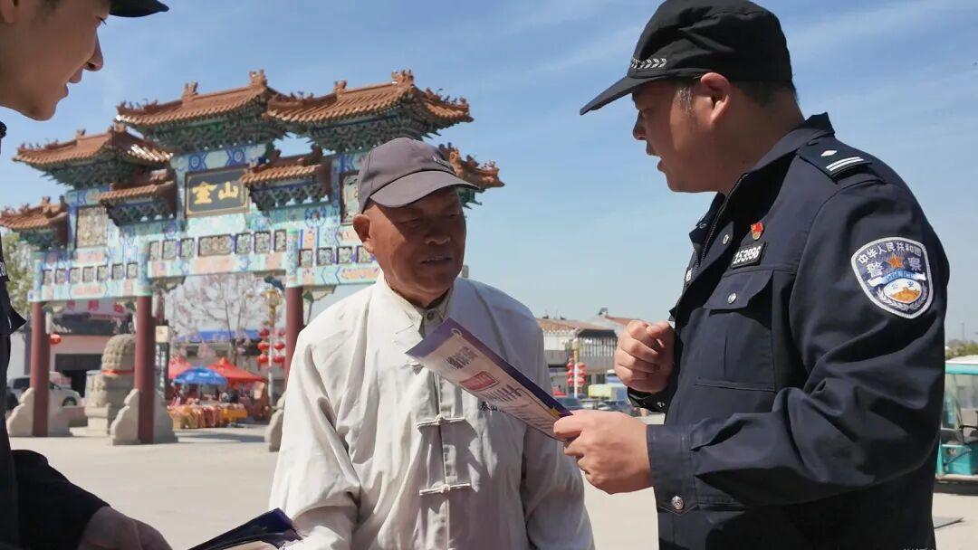 巨野县公安局“麟州小警”宣讲队结合核桃园、独山派出所来到金山景区,利用清明假期金山庙会有利契机,开展反诈、防火防盗、禁毒、反邪教、交通安全等安全常识宣传,通过发放宣传彩页、面对面讲解,向群众讲解最新反诈骗局、毒品新形态、防盗安全小技巧等知识,切实提高群众自我防范意识。