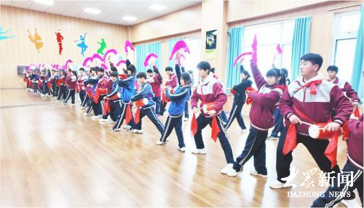 彭楼中学的学生们正练习鲁南花鼓。