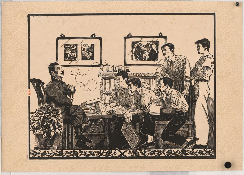 黄永玉木刻作品《鲁迅和木刻青年》