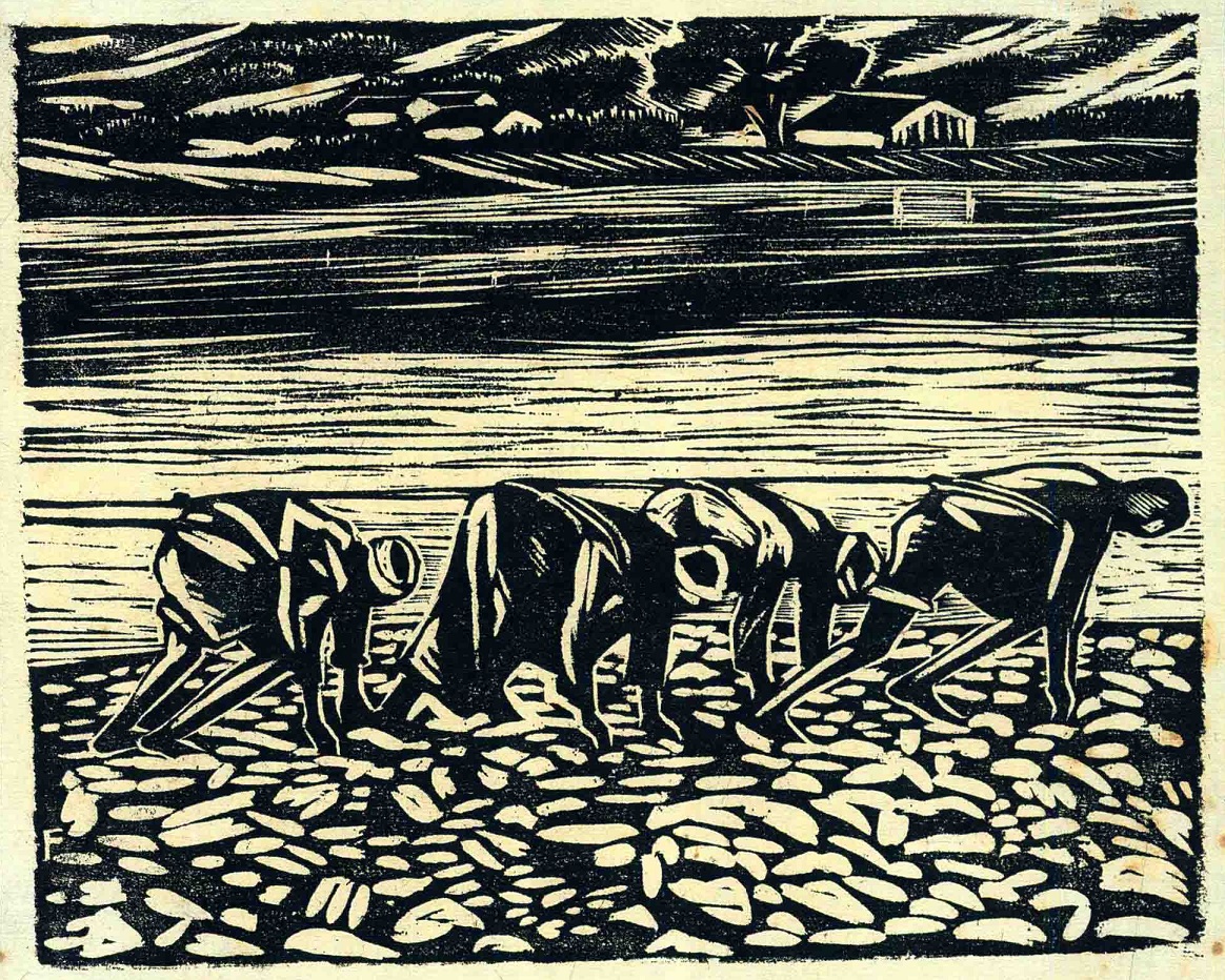 将艺术事业与劳苦大众解放事业结合在一起,这在鲁迅之前的时代从未有过。在木刻青年之间,这样的倾向尤为明显。饥荒、苦难的人们成为画面的主人公。因此,鲁迅写道:“近五年来骤然兴起的木刻,虽然不能说和古文化无关,但决不是葬中枯骨,换了新装,它乃是作者和社会大众的内心的一致的要求。所以仅有若干青年们的一支铁笔和几块木板,便能发展得如此蓬蓬勃勃。它所表现的是艺术学徒的热诚。因此也常常是现代社会的魂魄。”