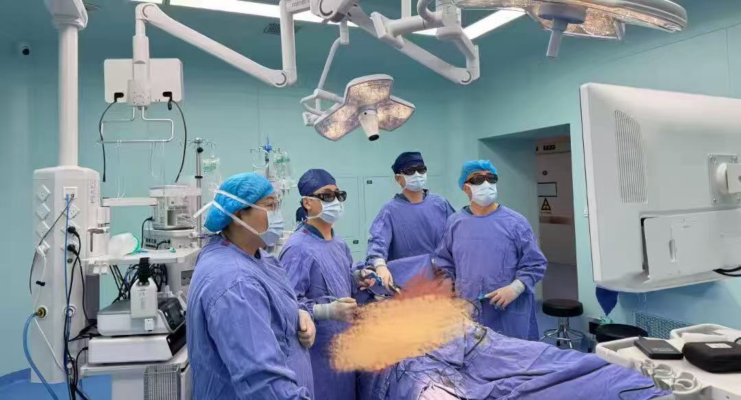手术正式开始,由崔周军博士团队率先开展3D腹腔镜下保留脾脏胰体尾切除术。团队凭借精湛微创技术,在狭小空间内精细分离、精准操作,细致游离胰腺与脾脏血管,全程完好保护脾脏血供与功能,在完整切除胰腺肿瘤的同时,成功保留重要免疫器官脾脏,有效避免术后免疫下降、血栓风险增高等问题,实现“根治肿瘤+保护脏器”双重目标。