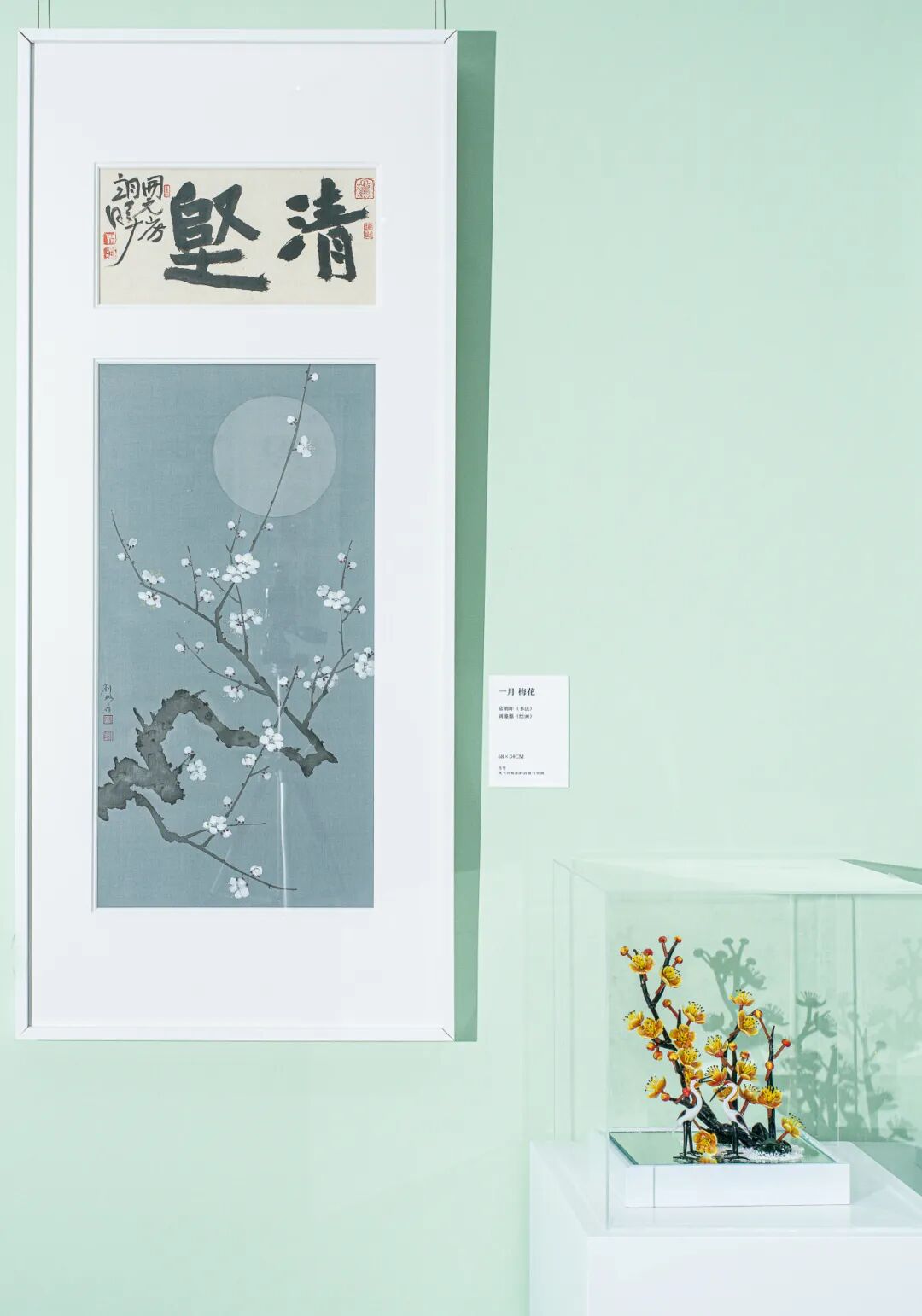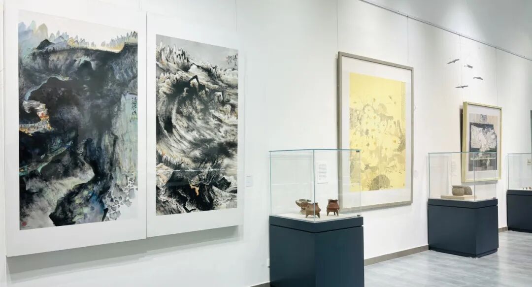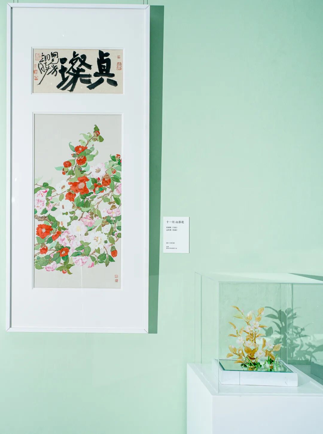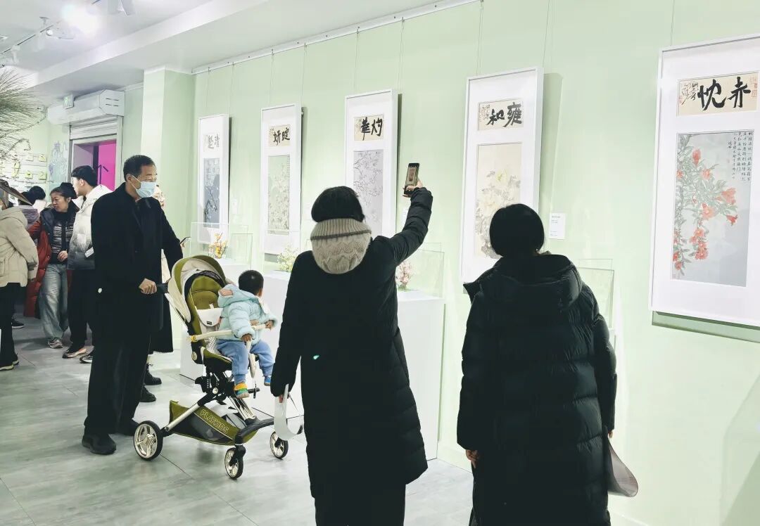 展览中,淄博十二花神琉璃作品同步展出,形成墨韵咏花、绘笔生花,琉璃映月、花神凝彩的光影交错意境。