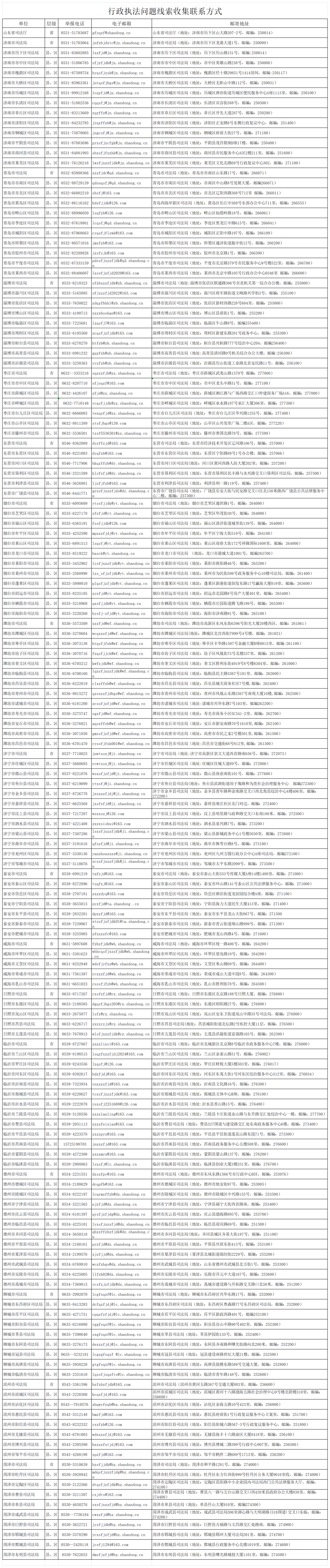 山东省司法厅关于收集行政执法突出问题线索的公告