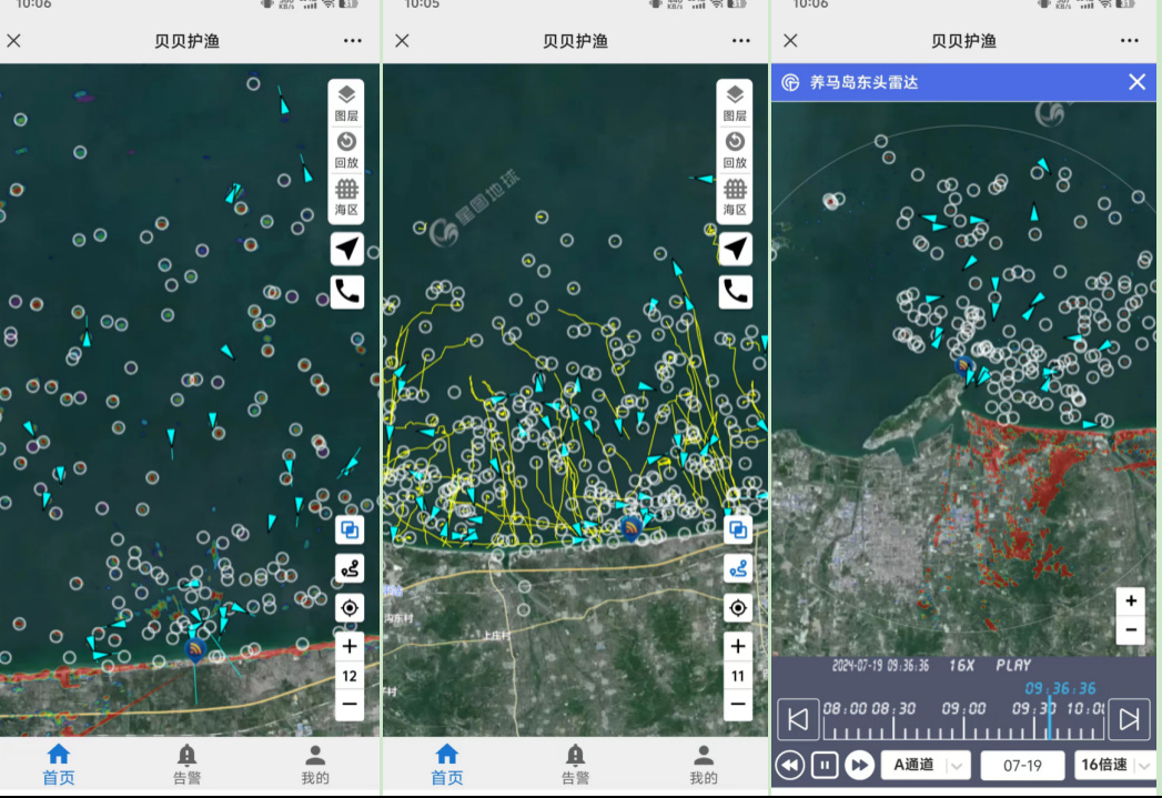 更让渔民安心的是,“贝贝护渔”不仅管“现在”,还能追溯“过去”。系统在云服务器中储存用户海区信息,提供七天内的船只轨迹追溯功能。“即使第二天才发现损失,用户也能调取历史数据,找到可疑船只。”技术人员说。