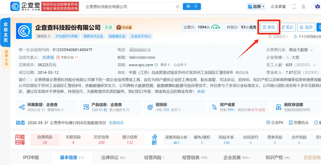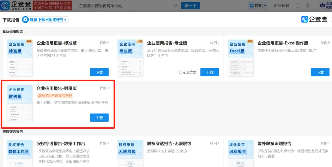企查查官网获取「财税版企业信用报告」入口