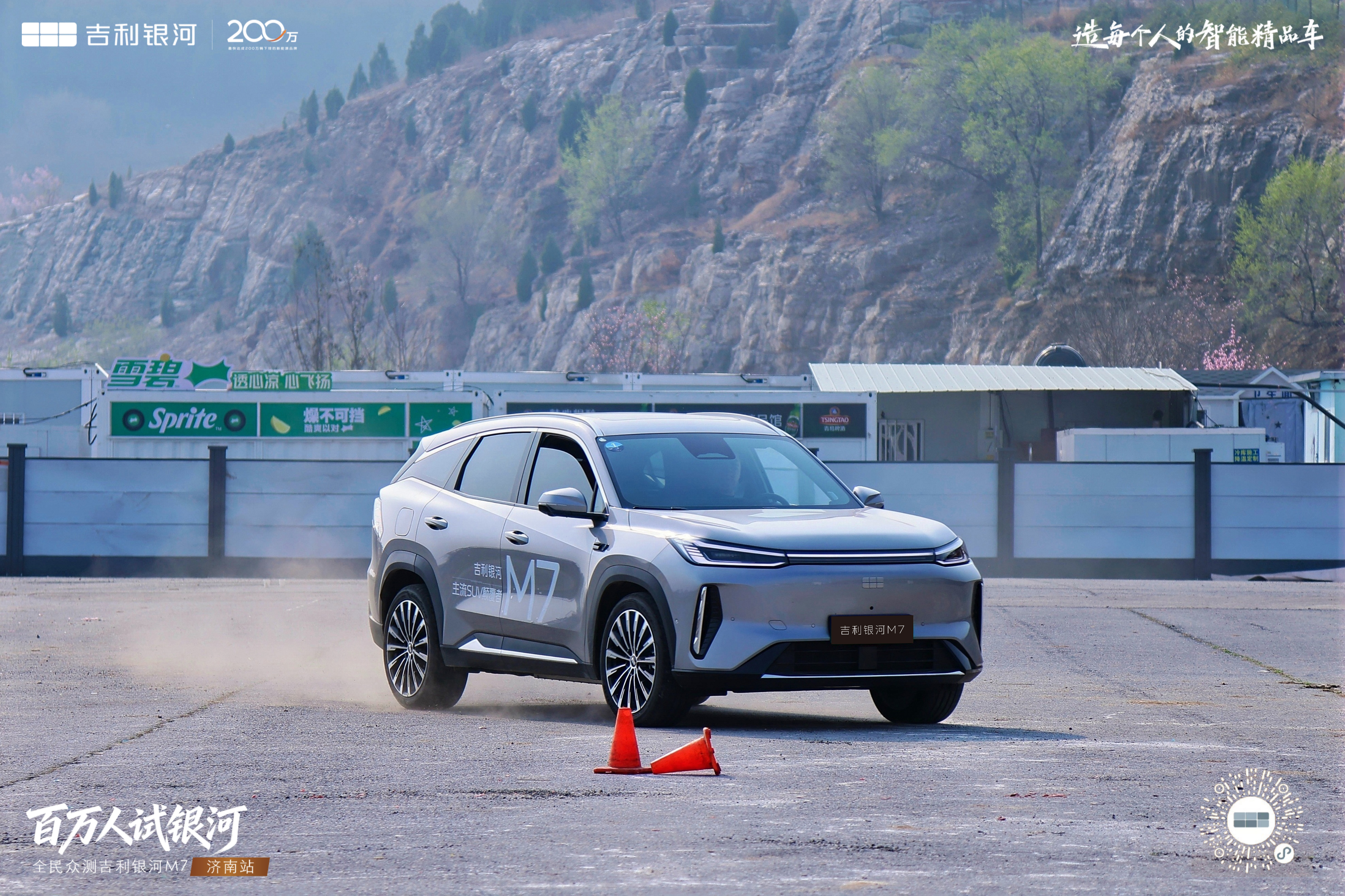 2026年3月28日,济南国际赛马场,吉利银河M7“百万人试银河”全民众测活动正在举行。作为M系列首款主流电混SUV,吉利银河M7并未止步于“省油”与“大空间”的常规叙事,而是以225km神盾金砖电池、81km/h麋鹿金牌驾控、1730km超长金算续航三大核心竞争力,重新定义A级电混SUV的价值标准。