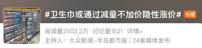 近日,#卫生巾或通过减量不加价隐性涨价#话题登上热搜引发关注。