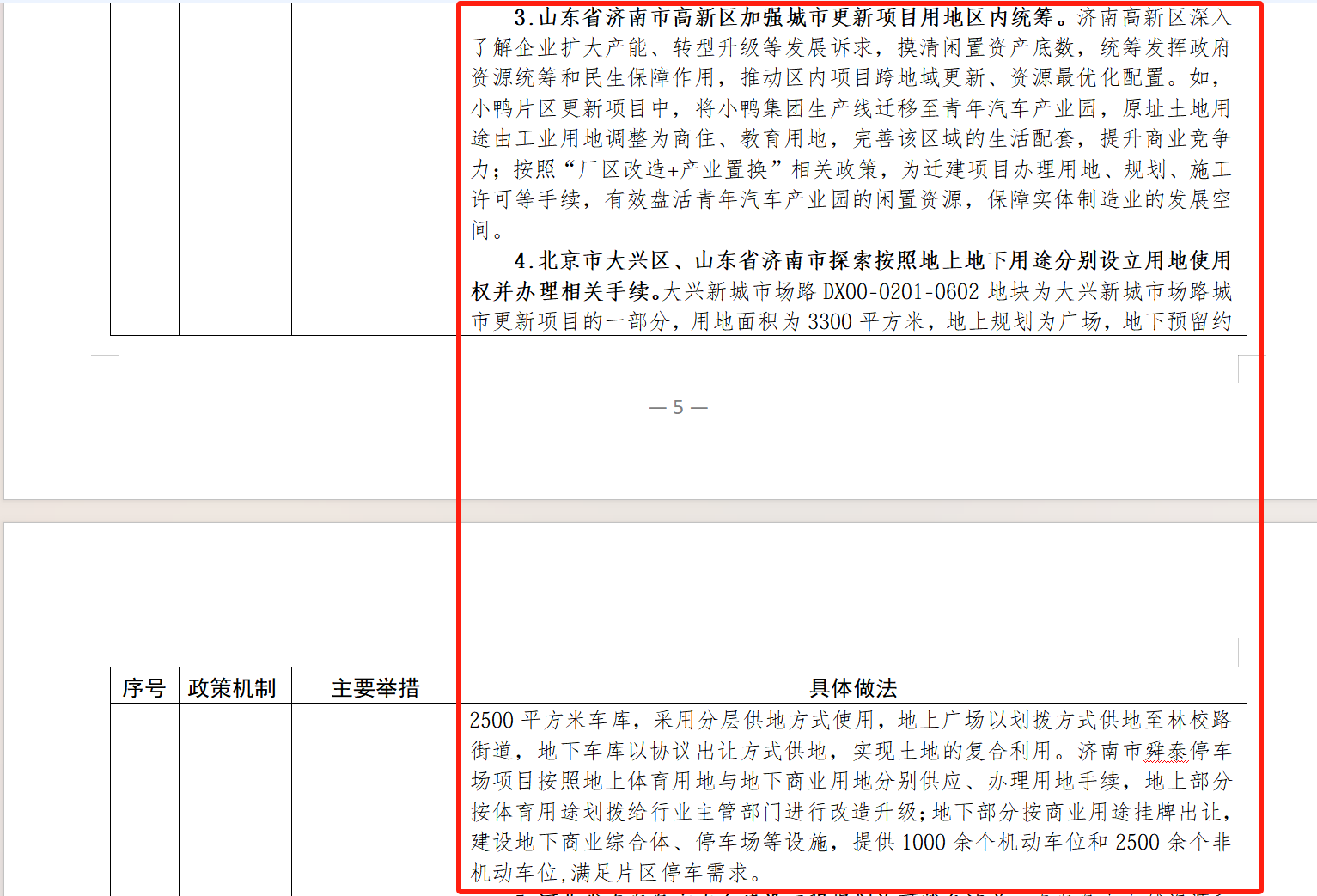 另外,济南市探索按照地上地下用途分别设立用地使用权并办理相关手续。济南市舜泰停车场项目按照地上体育用地与地下商业用地分别供应、办理用地手续,地上部分按体育用途划拨给行业主管部门进行改造升级;地下部分按商业用途挂牌出让,建设地下商业综合体、停车场等设施,提供1000余个机动车位和2500余个非机动车位,满足片区停车需求。