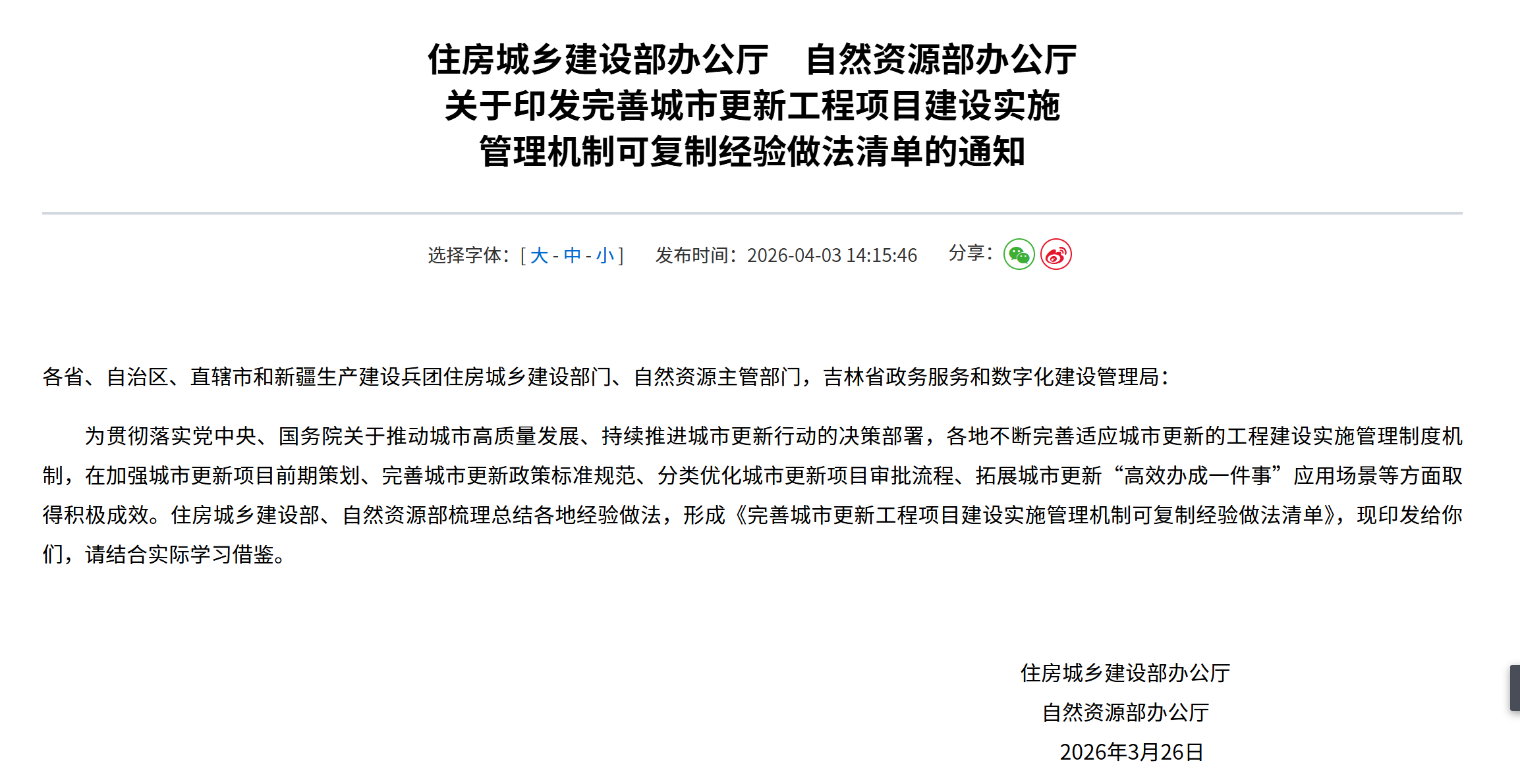 近日,住房城乡建设部办公厅、自然资源部办公厅联合印发《完善城市更新工程项目建设实施管理机制可复制经验做法清单》,面向全国推广30项城市更新经验做法。其中,山东7项经验成功入选,济南高新区加强城市更新项目用地区内统筹和探索按照地上地下用途分别设立用地使用权并办理相关手续两个经验做法入选。