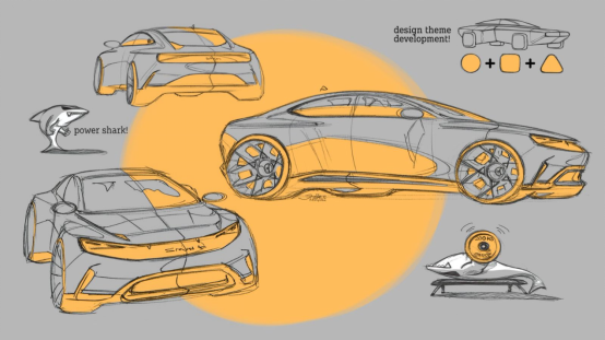 来自梅赛德斯-奔驰设计师的手稿,呈现smart精灵6号的“鲨鱼”设计灵感与整车设计思路