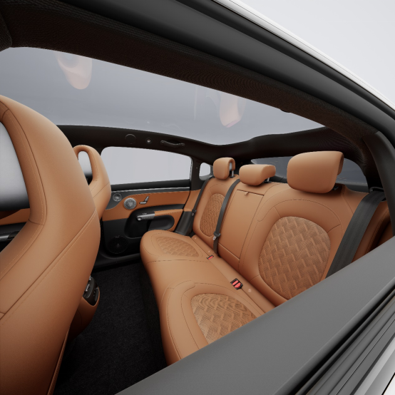 作为“新一代豪华掀背轿车”,smart精灵6号在空间利用率上给出了明确答案:86%的得房率。这意味着在同等车身尺寸下,其座舱实际使用面积比同级车型多出一个登机箱的容积,将更多车身尺寸真正留给座舱,实现从参数到体验的转化:后排963mm头部空间与135mm膝部空间,确保乘员舒展坐姿;最大122°的后排座椅调节角度,为长途出行提供更放松的躺靠姿态。