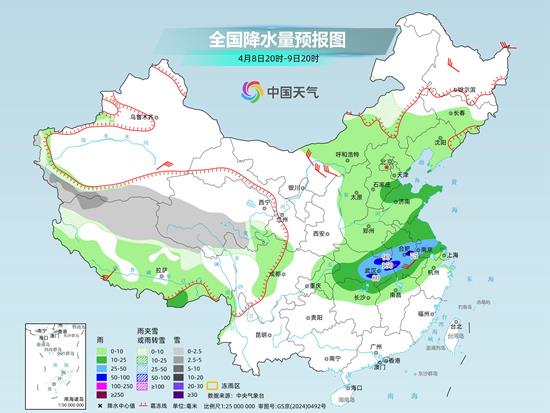 预计4月8日至9日,江汉、江淮、江南北部及重庆等地有中到大雨,局地暴雨或大暴雨,降雨最强的时段将出现在8日中午到9日中午。过程中,还会伴随强对流天气,尤其是湖北、湖南、安徽等地可能出现8至11级的雷暴大风,并伴有小冰雹和短时强降水。湖北东南部局地甚至不排除出现龙卷的可能,请当地的朋友密切关注气象预警信息,强对流时段尽量减少外出。