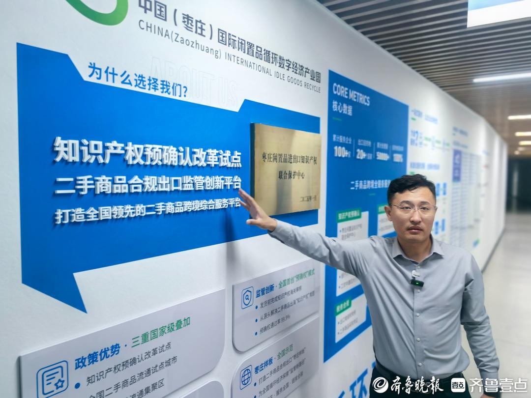一只来自枣庄的二手品牌箱包,贴上专属二维码,经过海关知识产权状况预确认,短短几秒便完成通关发往海外。这不是孤例,而是中国(枣庄)国际闲置品循环数字经济产业园里每天都在发生的常态。