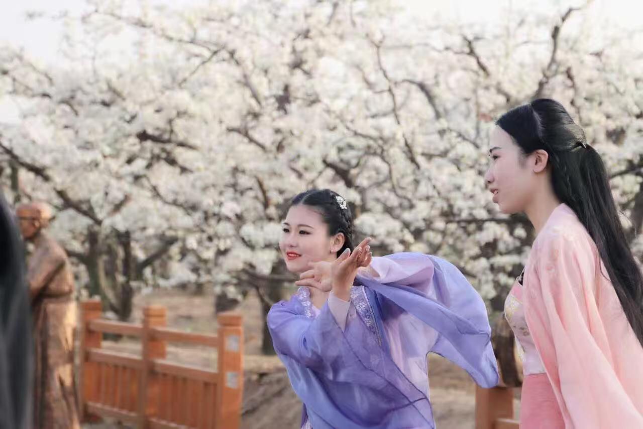 “妈妈,花神姐姐往那边走了,快追!”4月4日,在滨州阳信县万亩梨园里,小女孩拉着母亲的手,兴奋地穿过人群。她们追着的,是十二花神巡游队伍;她们身处的,是一片“步步有戏、处处有曲”的沉浸式梨园。 作为阳信深耕37年的文旅金字招牌,今年“乡村好时节・艺术乡间”主题年滨州阳信梨花会暨第十六届黄河三角洲民俗文化节彻底颠覆“打卡看花、拍完就走”的传统赏花模式,十二花神踏香巡游,梨园曲艺小书场余音绕梁,武术展演刚劲铿锵,舞蹈快闪活力迸发,鼓书说唱韵味悠长,一场场特色演出轮番上阵,真正实现了一步一景、一步一戏,让游客从“观花人”变身“戏中人”。