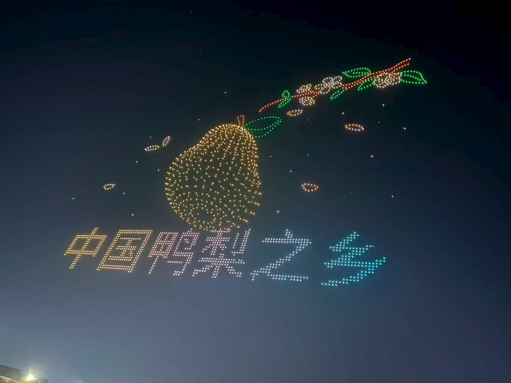 当春日的暮色漫过梨园枝头,科技光影特色展演无人机编队表演为这场文旅盛会再添璀璨亮色,数千架无人机从健身广场腾空而起,以夜幕为卷、光影为墨,在浩瀚夜空之中缓缓晕开万顷梨花,勾勒出黄河奔涌的壮阔,描摹出鸭梨丰收的喜悦、肉牛产业的兴旺。从自然风光到文化底蕴,从特色产业到发展愿景,短短十几分钟的表演,将阳信的城市名片与发展成果浓缩于璀璨光影之中,为现场观众带来了一场震撼人心的视觉盛宴。
