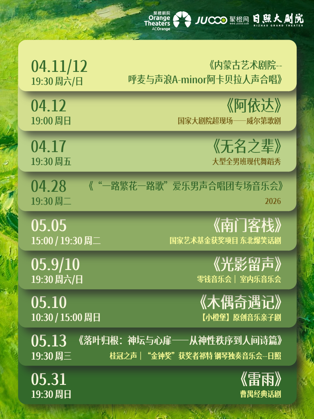 槐月宜看剧,不宜负春风!日照大剧院4月—5月演出剧目来了