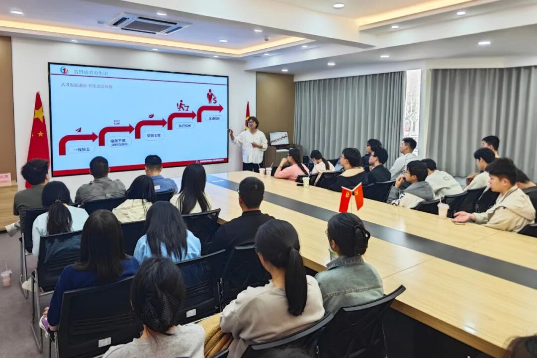 学生们先后参观了两家企业的办公环境、生产场地与文化阵地,直观了解了企业的发展历程、业务布局、企业文化与人才培养体系。随后,校企双方召开交流座谈会,企业相关负责人围绕人力资源体系、岗位需求、职业发展路径等内容进行详细介绍,企业优秀员工代表结合自身成长经历,分享职业发展心得与职场经验。企业还针对不同岗位方向,安排专人与学生一对一、面对面交流,精准匹配学生求职意向与企业岗位需求,20余名学生当场达成初步就业意向。