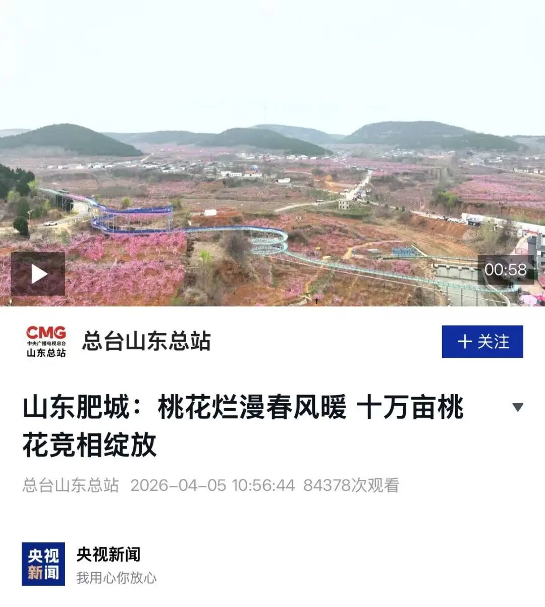 对肥城桃花盛景进行集中报道