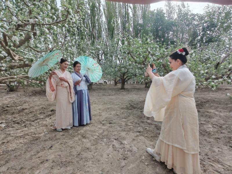 甘肃游客周晓露说:“现在的苹果花开得正好,很美,拍出来的照片也特别出片。一边赏花一边参加活动,心情特别舒畅。”