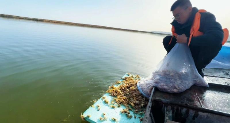 当天的放苗现场十分热闹,工作人员小心翼翼地将蟹苗分批放入湖中,活泼的蟹苗一入水,就快速游向水草丰茂的湖区,很快适应了新环境。这批蟹苗可不是普通品种,是新疆沃土民泰农业科技有限公司联合上海海洋大学,经过层层筛选引进的优良水产苗种,此次成功投放,也标志着校地产学研合作在博湖落地见效。