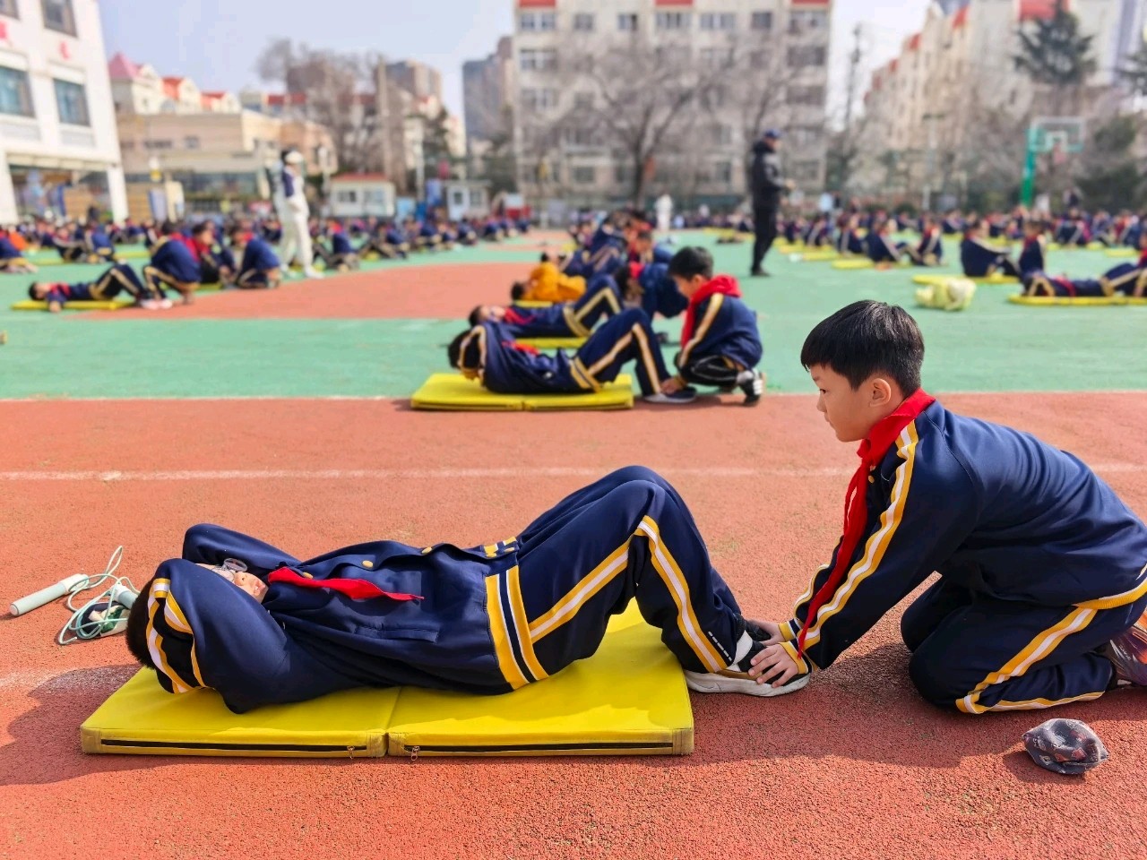 青岛育新小学创新打造“室内外联动”课间模式:盘活教学楼方寸空间,开辟室内微运动区,配备仰卧起坐、体适能游戏等设施;同时优化室外15分钟活动,实行分区管理。通过室内外互补,保障学生全天候运动,让课间充满童趣,益智身心,健康成长。