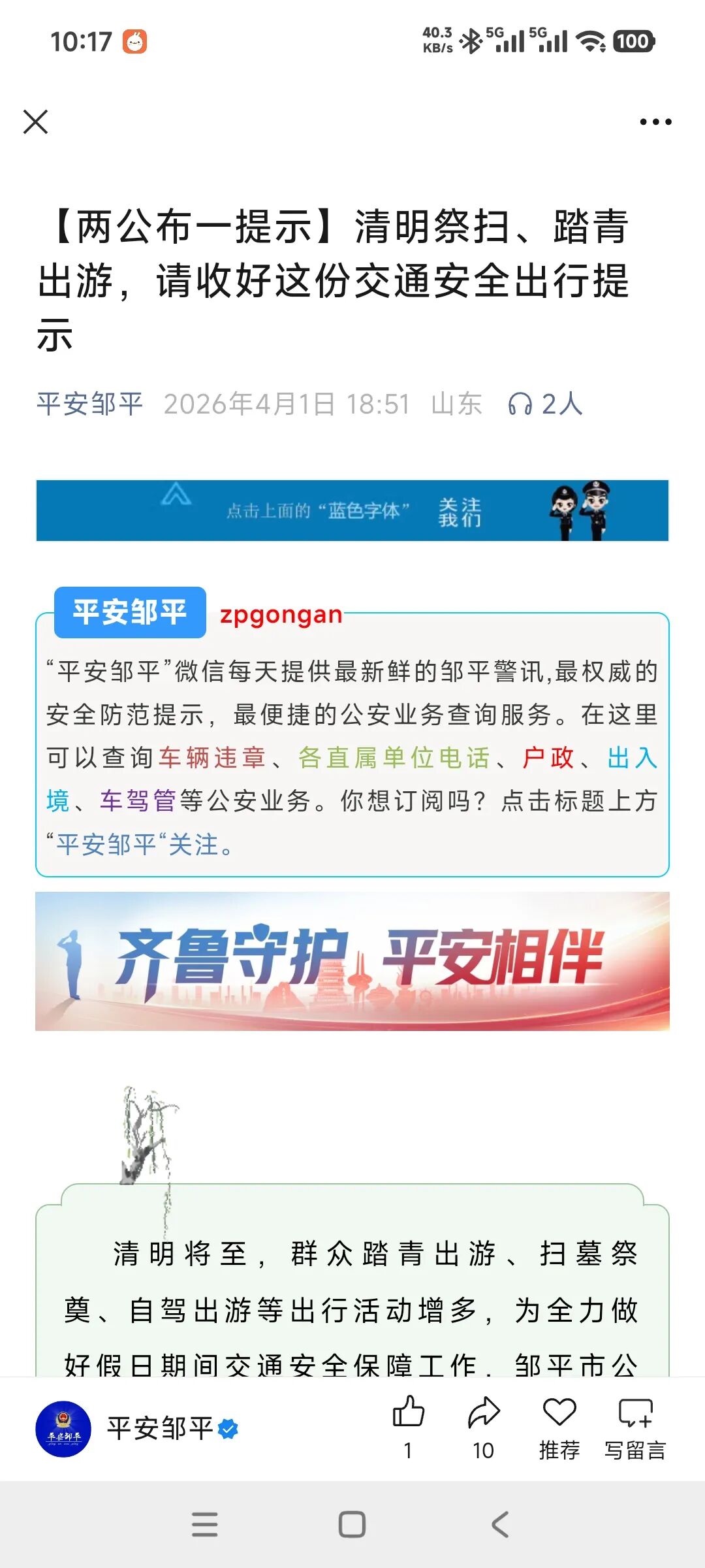 清明有景,坚守有声,山河无恙,警护安康,清明假期已结束,但守护不停歇,邹平交警将用执着与温情,坚守每一份平安。