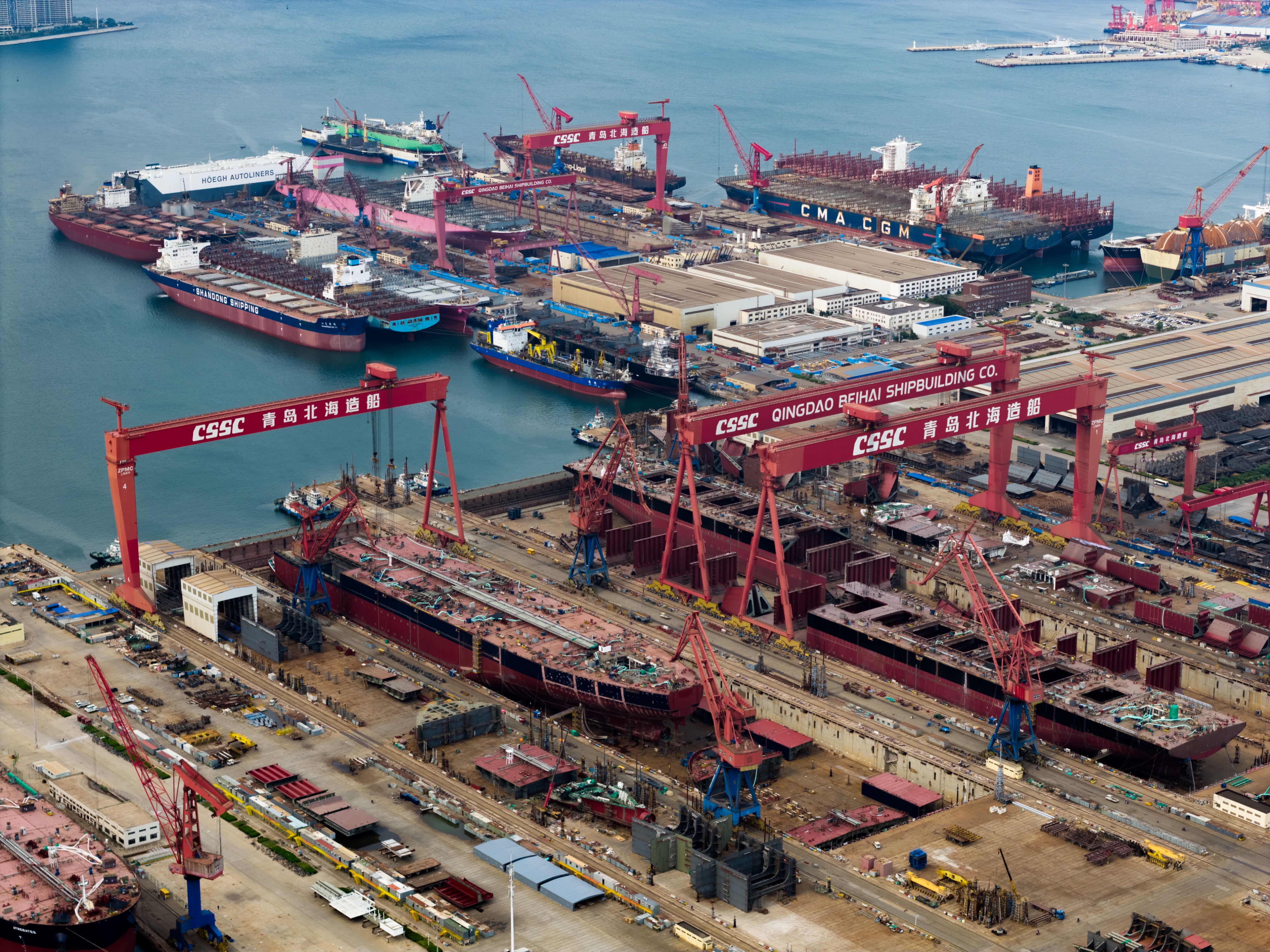 打开世界地图,就会发现青岛正处于中日韩造船业的“圆心”。得天独厚的深水岸线和紧邻国际航道的地理优势,让青岛成为了全球船东眼中的“黄金码头”。