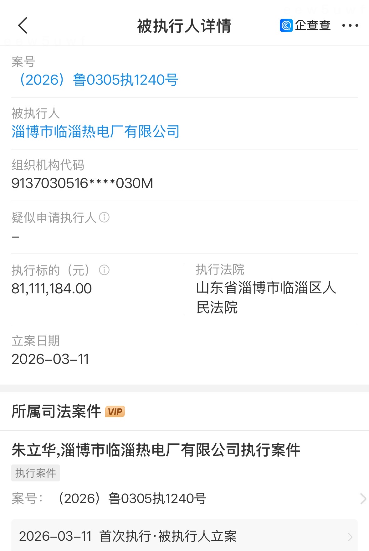 临淄热电厂法定代表人朱立华被限高,申请人为淄博国企