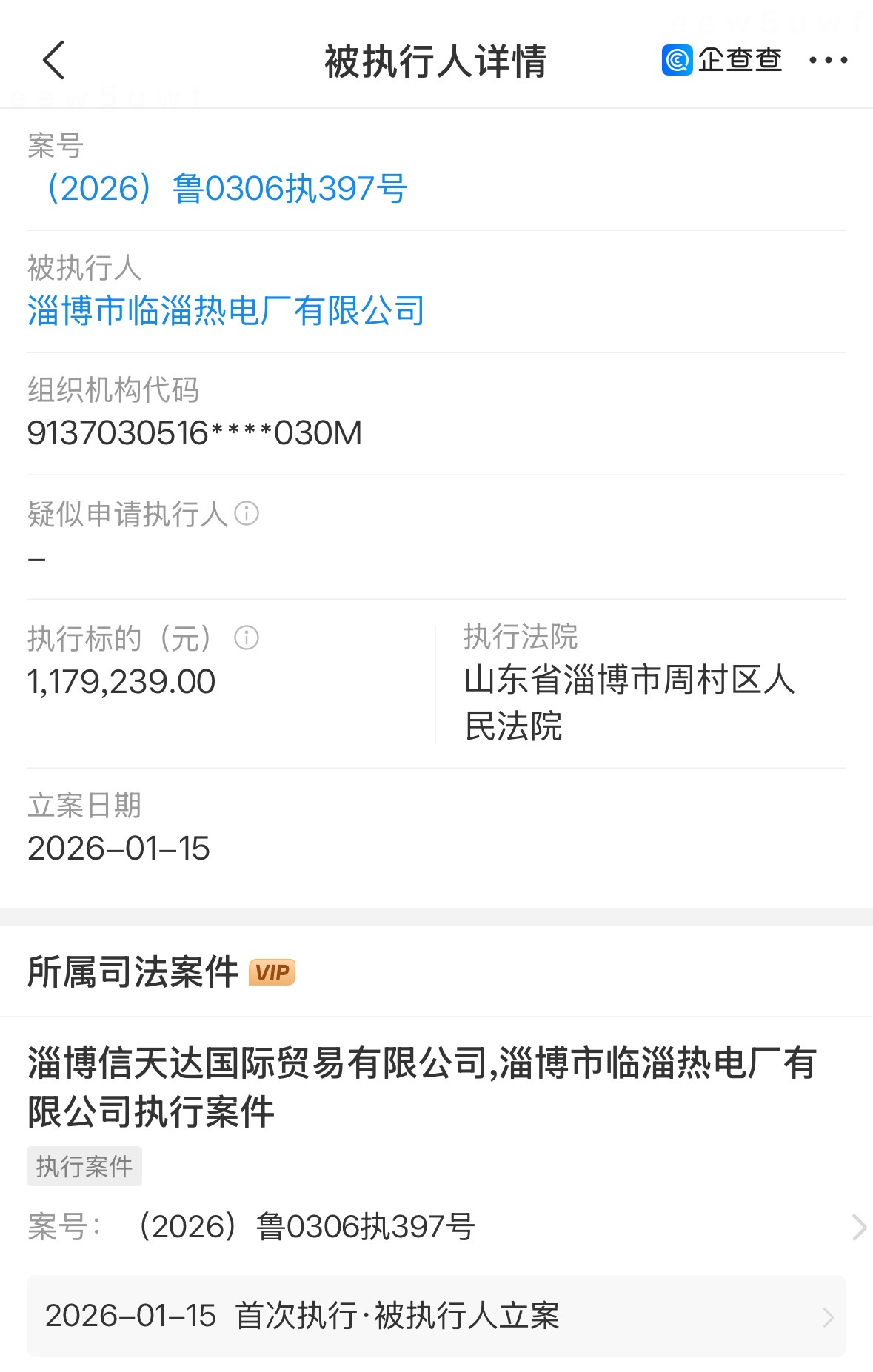 除了法定代表人被限高,临淄热电厂还多次成“被执行人”。3月18日,淄博市临淄区人民法院将其列为被执行人,执行标的8111.12万元。1月15日,淄博市周村区人民法院将其列为被执行人,执行标的117.92万元。