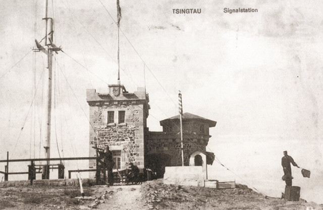 1897年11月14日,德国海军登陆栈桥,以借地操练为由,首先强占了信号山,以此作为制高点,把枪口对准章高元的总兵衙门,迫使清军撤离。德国人在山上建立了一座军用无线电台,这也是青岛最早的无线电台。后来,在山顶部建信号发布台一处。这个信号台其实是一座二层小楼,外墙用石头砌成,造型有些像碉堡。信号台每天悬挂各类信号标志及气象、风力标志,专为轮船及帆船入港时传递信号。因此,德国胶澳总督将该山命名为“齐格纳山”(德语“信号”的意思),这就是“信号山”名字的由来。这座山又被老百姓称为“挂旗山”或“旗台山”。