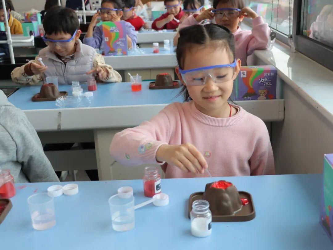 课堂之外,外教还带领孩子们走进实验室,开启趣味实践之旅。亲手触摸实验器材、观察模拟火山现象,孩子们在动手操作中大胆用英语提问、交流分享,将语言学习与实践探索紧密结合,真切体会到英语作为沟通工具的实用与乐趣,让学习变得鲜活又生动。
