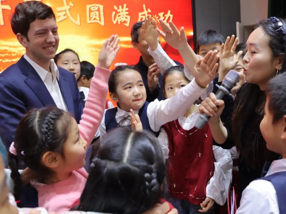活动特邀外教亲临现场,与孩子们开展随机互动对话。同学们踊跃举手、大胆交流,纯正表达、积极互动,零距离感受英语魅力,现场氛围热烈高涨。