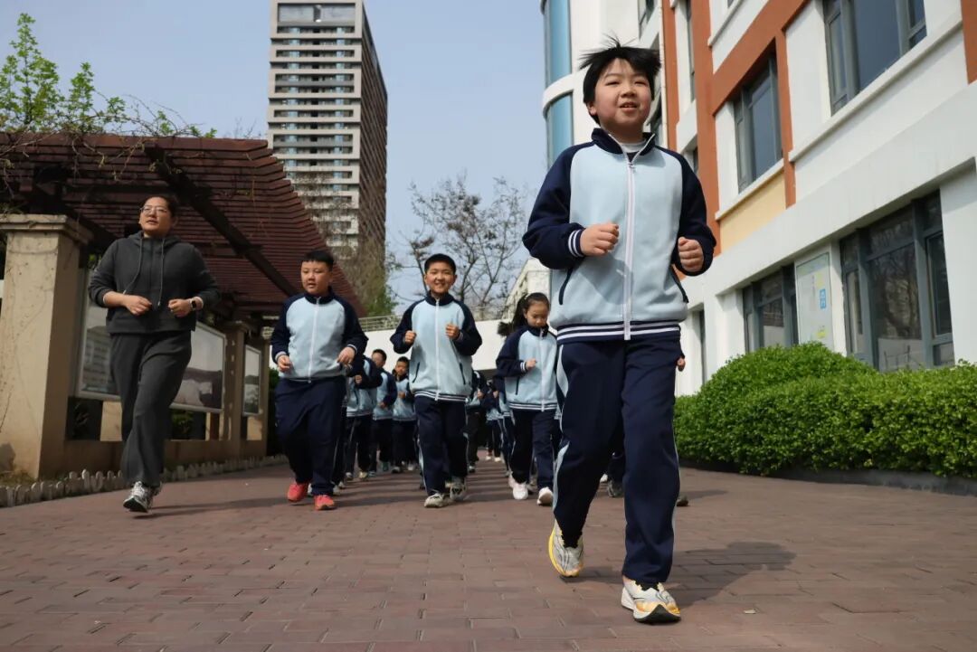 随着激昂的音乐响起,跑操正式开始。整齐的步伐踏响成长的节拍,“一二一、一二一”的口号响彻校园,既喊出了班级的凝聚力,也喊出了少年的朝气与担当。班主任们也跟在队伍旁和孩子们一起迈步,为大家加油鼓劲,操场上处处洋溢着生机与活力。