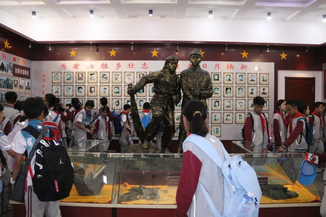 仪式结束后,全体师生有序瞻仰革命烈士纪念馆。思政、历史教师结合馆藏文物、历史图片、文献资料,生动讲解淄博革命斗争史与英烈事迹,引导学生读懂文物背后的信仰力量,感悟革命先辈的忠诚与担当。同学们认真聆听、仔细记录,在沉浸式研学中深化对红色历史的认知,厚植爱国情怀。