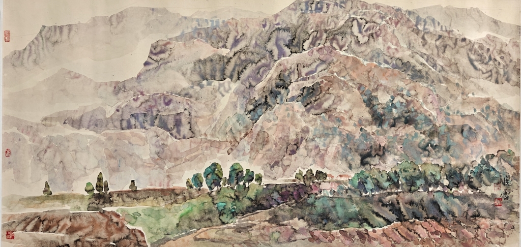 辛悦雷一头扎进“没骨法”山水画的创作实验与探索中。他一反中国画骨法入画的传统,颠覆了前人“先立其骨,后赋其彩,骨以载彩,彩以彰骨”的规则,将传统的没骨法与西方绘画的光影、块面、色彩等相融合,创作出了一批色彩得以扩展、没有骨法却有骨感的具有现代艺术形式感、视觉冲击力的山水彩画。多幅作品入选国家级大展。