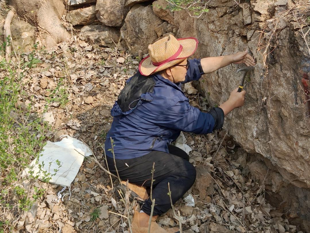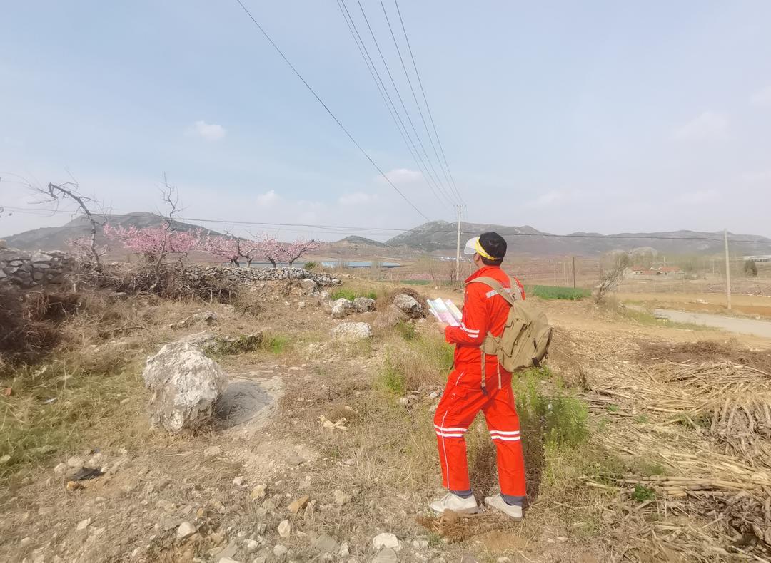 清明时节的沂蒙山,山花初绽,春意正浓。在蒙阴县大成子、下旺的山野沟壑间,地质锤的敲击声清脆回荡,与林间鸟鸣交织成曲。
