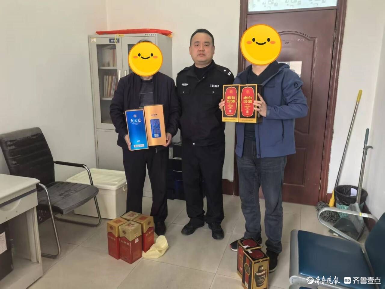 4月1日,临清市公安局新华路派出所内笑声一片,25瓶高档白酒摆在桌上,几名失主从民警手中接过失而复得的物品,激动之情溢于言表,“真没想到这么快就找回来了,太感谢民警同志了!”被盗电动车车主专程送来一面锦旗表示感谢。