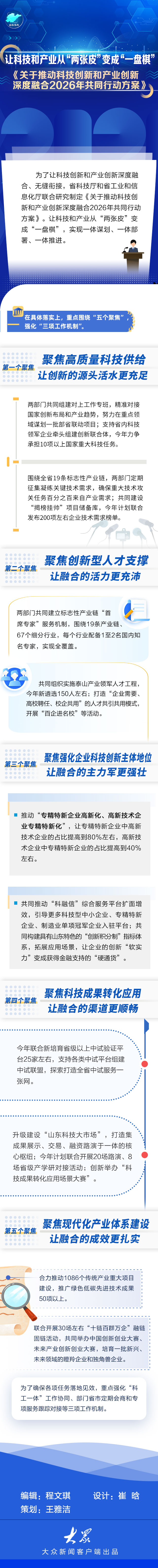 科技创新和产业创新深度融合“一盘棋”,山东这样干→直通发布厅 | 2026-04-08 10:28:11 原创程文琪 崔晗 来源:大众新闻·大众日报微信扫码扫码下载客户端4月8日上午,山东省人民政府新闻办公室举行“干事创业 担当尽责”主题系列新闻发布活动,邀请省科技厅主要负责同志等介绍山东实行“科工一体”,推动科技创新与产业创新深度融合情况。责任编辑:姜倩