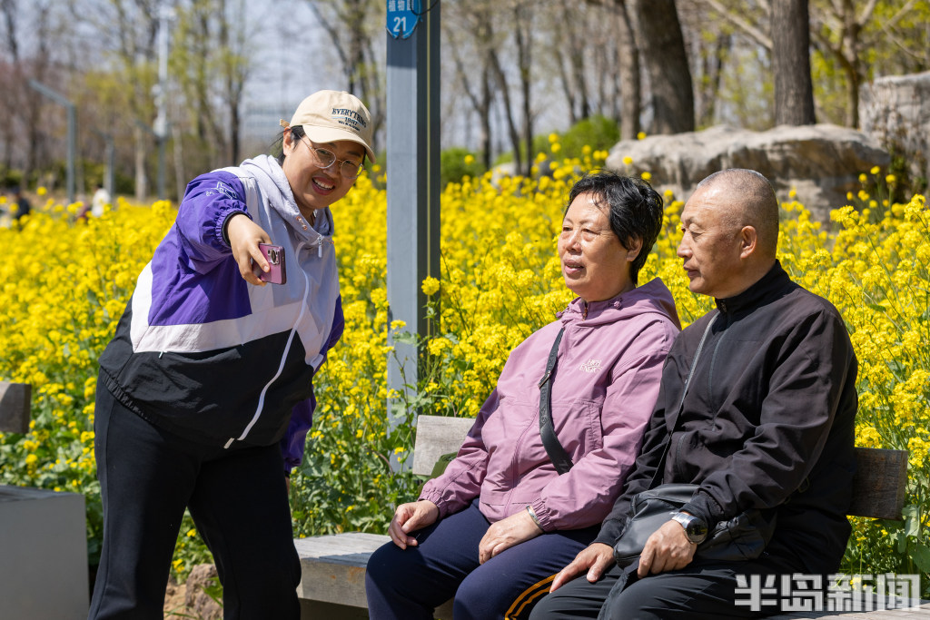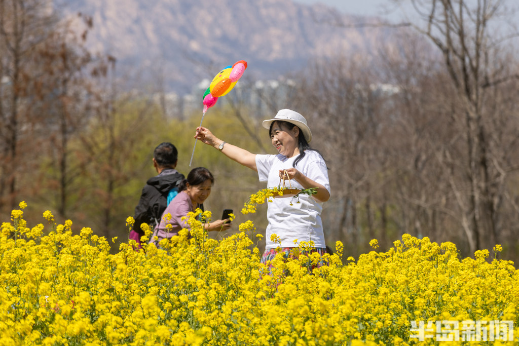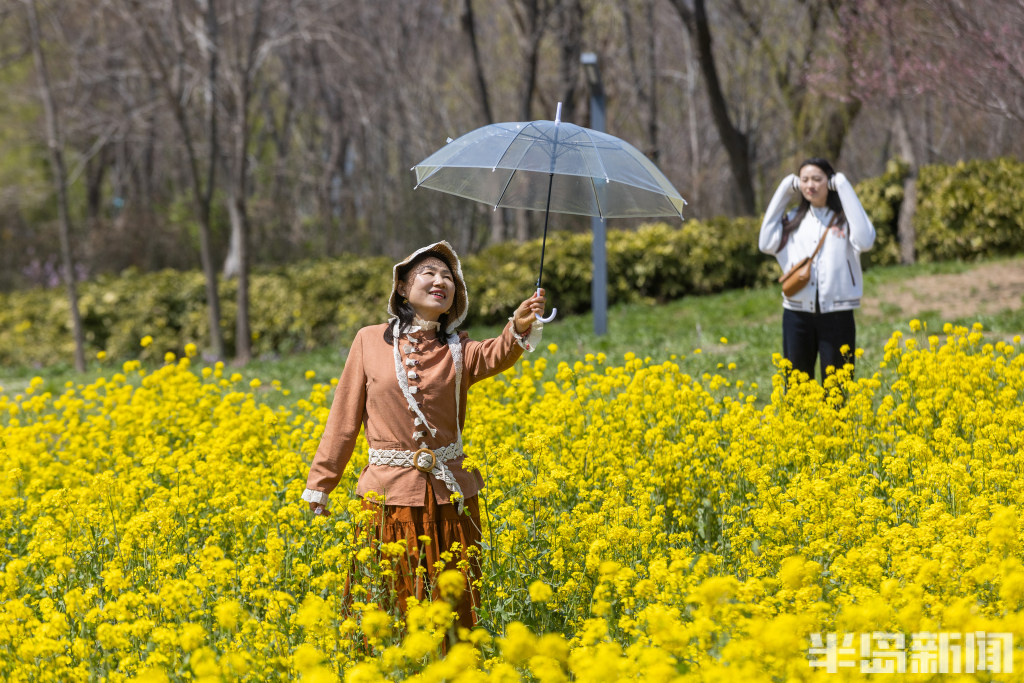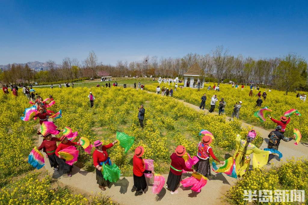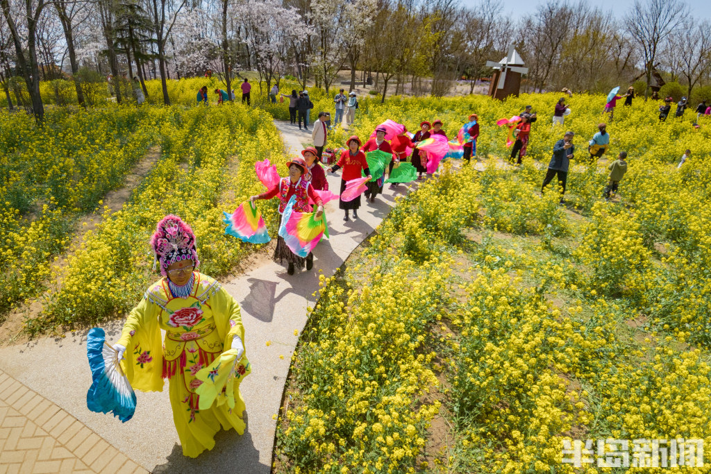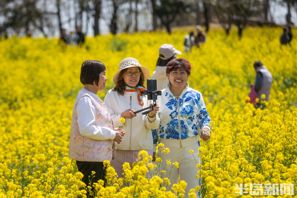 4月7日,青岛西海岸新区唐岛湾畔,金色的油菜花浪漫盛开,吸引大批市民前来打卡。油菜花海位于唐岛湾南岸,共20亩,是唐岛湾景区打造的标志性春日美景。每年4月份,油菜花海进入最佳观赏期,一丛丛金黄的油菜花迎风绽放,构成了一道温馨浪漫的风景。当日,许多市民在此赏花观景,一些老年朋友专门前来扭起秧歌,大家纷纷拍下眼前美景,留住春天的美好。(半岛全媒体首席记者孟达)