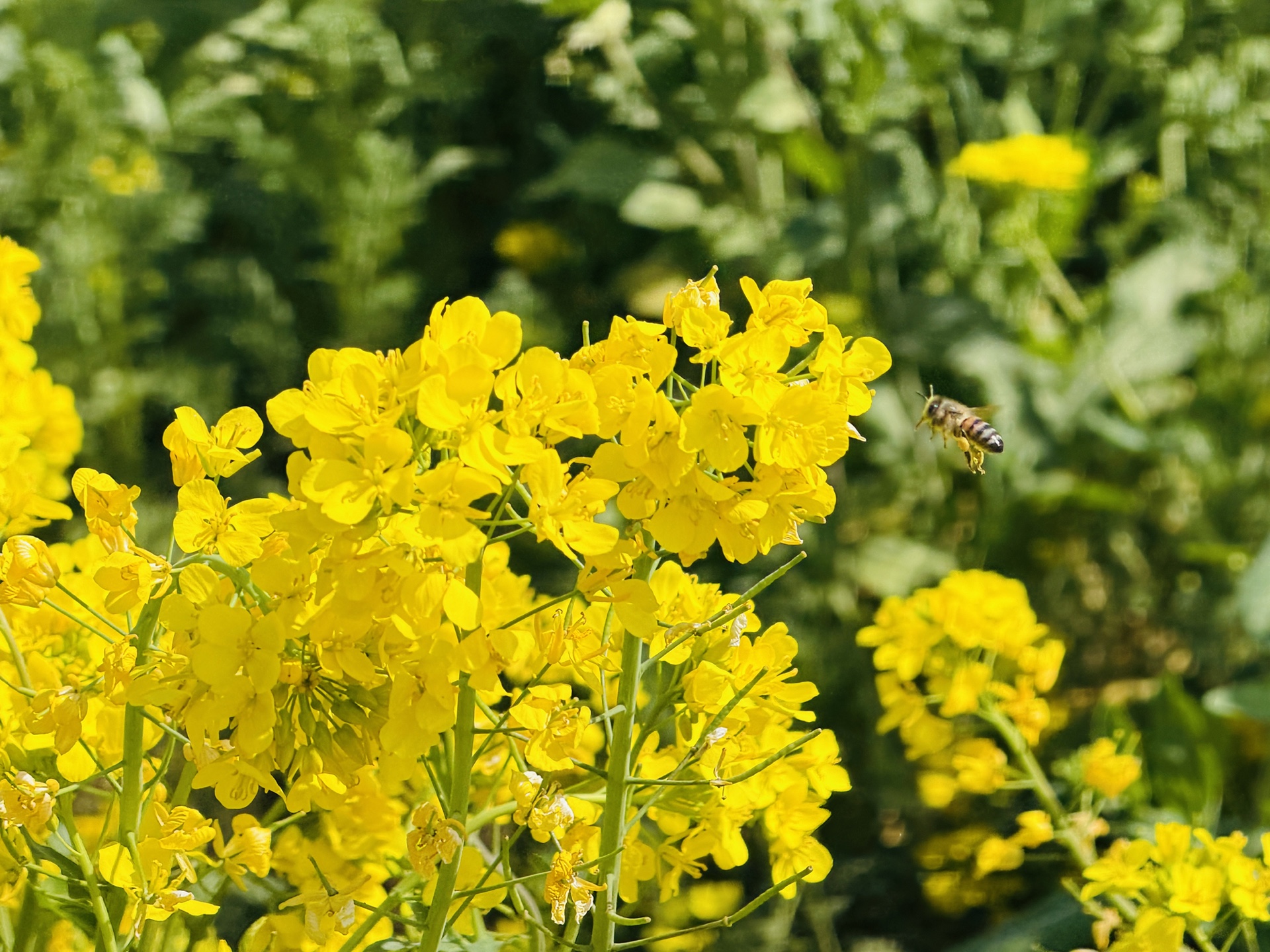 一株株油菜花在春风中摇曳生姿,蜜蜂和蝴蝶在花间翩翩起舞。远远望去,成片的油菜花与错落有致的乡村民居、蜿蜒的乡间小路交相辉映,构成了一幅田园风光图,美不胜收。不少游客漫步在花田间的赏花小径上,或驻足拍照,或闭目闻香,尽情享受着这份来自春天的馈赠。
