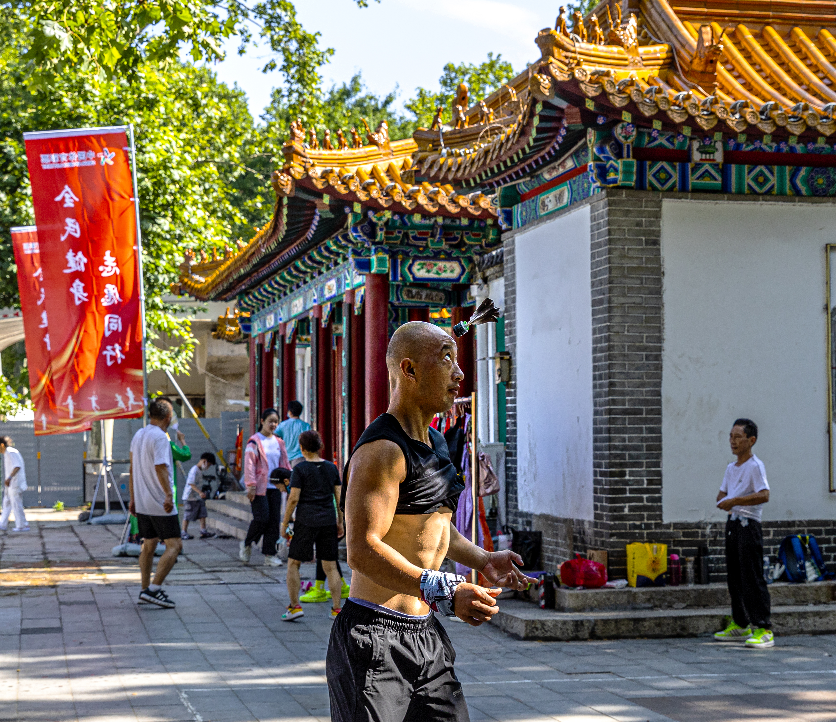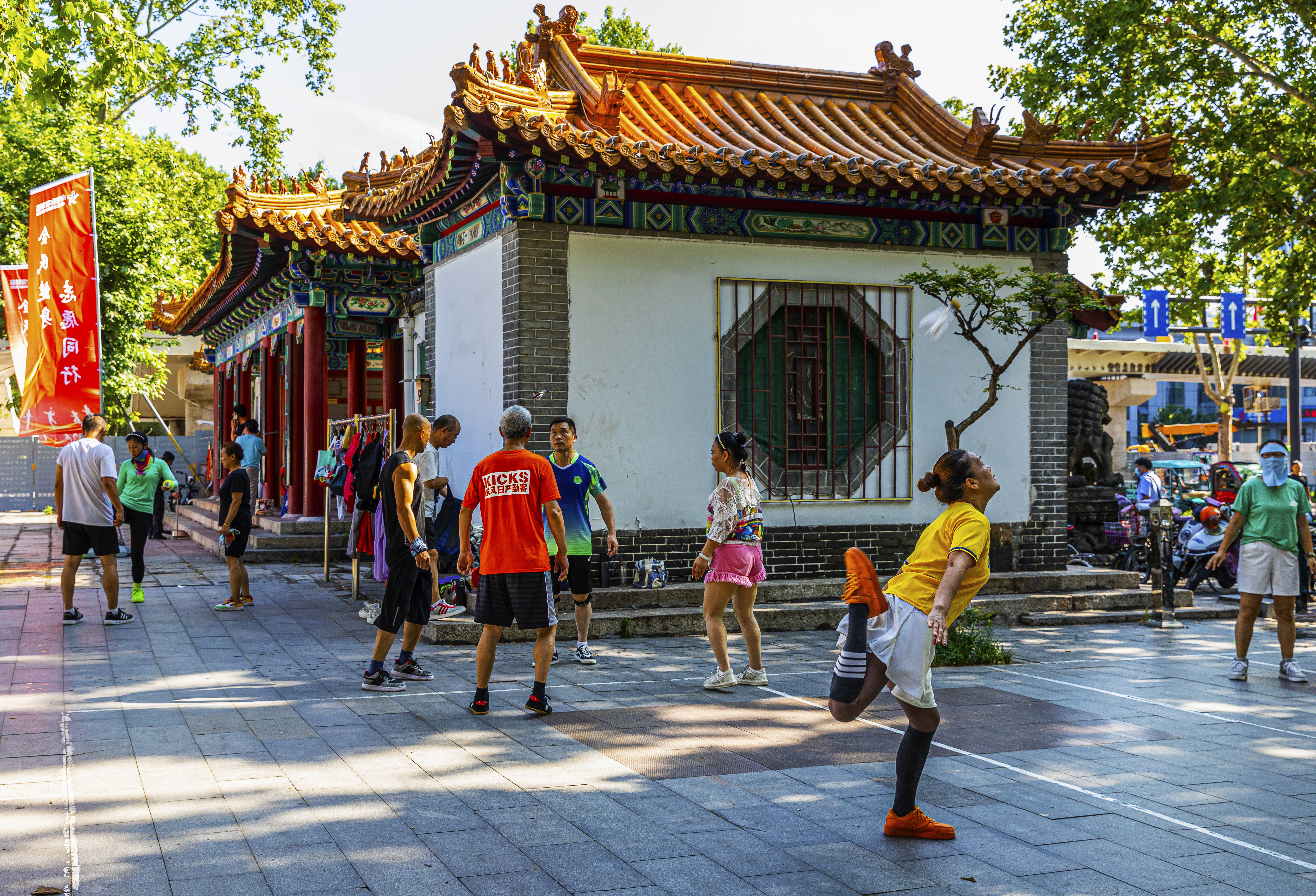 作品介绍:本组作品拍摄于2022年7月7日拍于济宁任城区公园。生动记录了“踢毽子(花毽)”这项传统民间健身运动的鲜活场景,展现了全民健身的活力与市井烟火气。