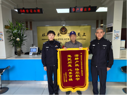 2026年4月3日,居民王先生代替妻子刘女士将一面绣有“深耕户政 恪尽职守 急民所急 心系百姓”的锦旗送到济宁市公安局任城分局东门派出所户籍大厅,用感激的话语对民警快速高效为民办实事、解难题的工作作风表示由衷的感谢。