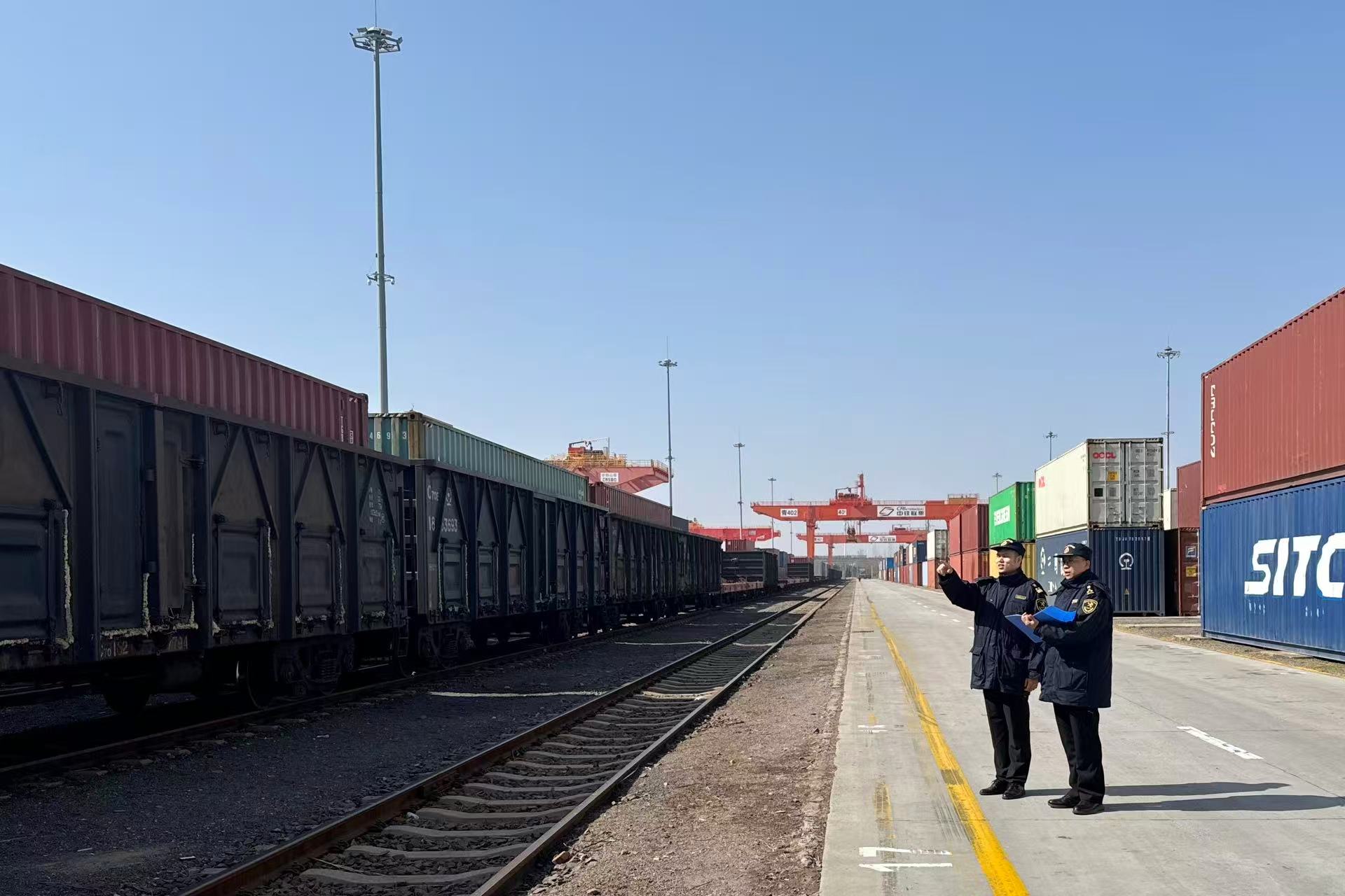 (图为关员现场监管中欧班列开行。 王朕惟/摄)