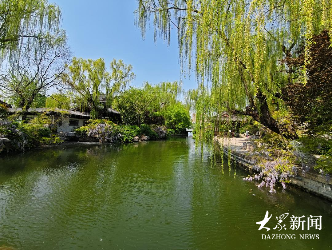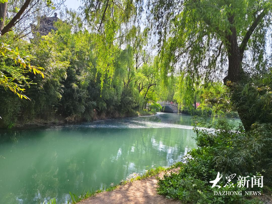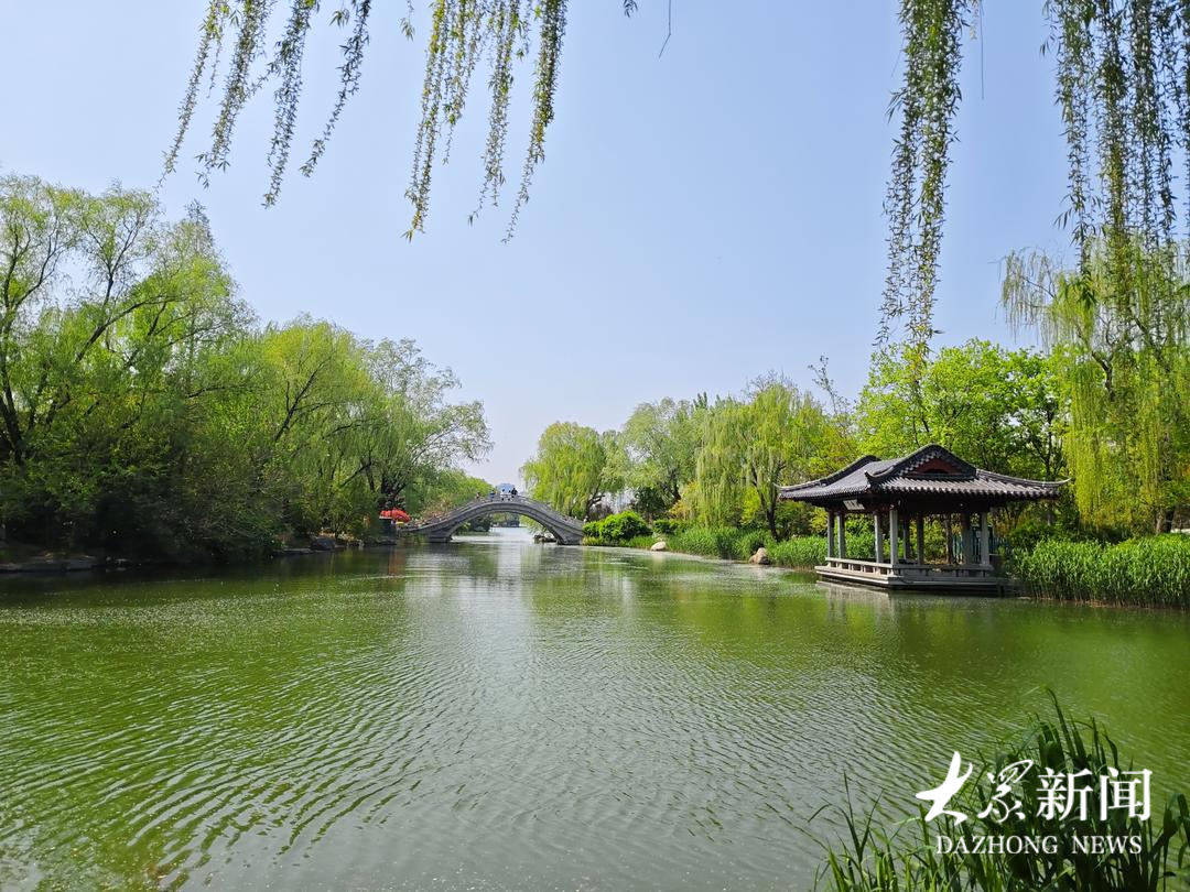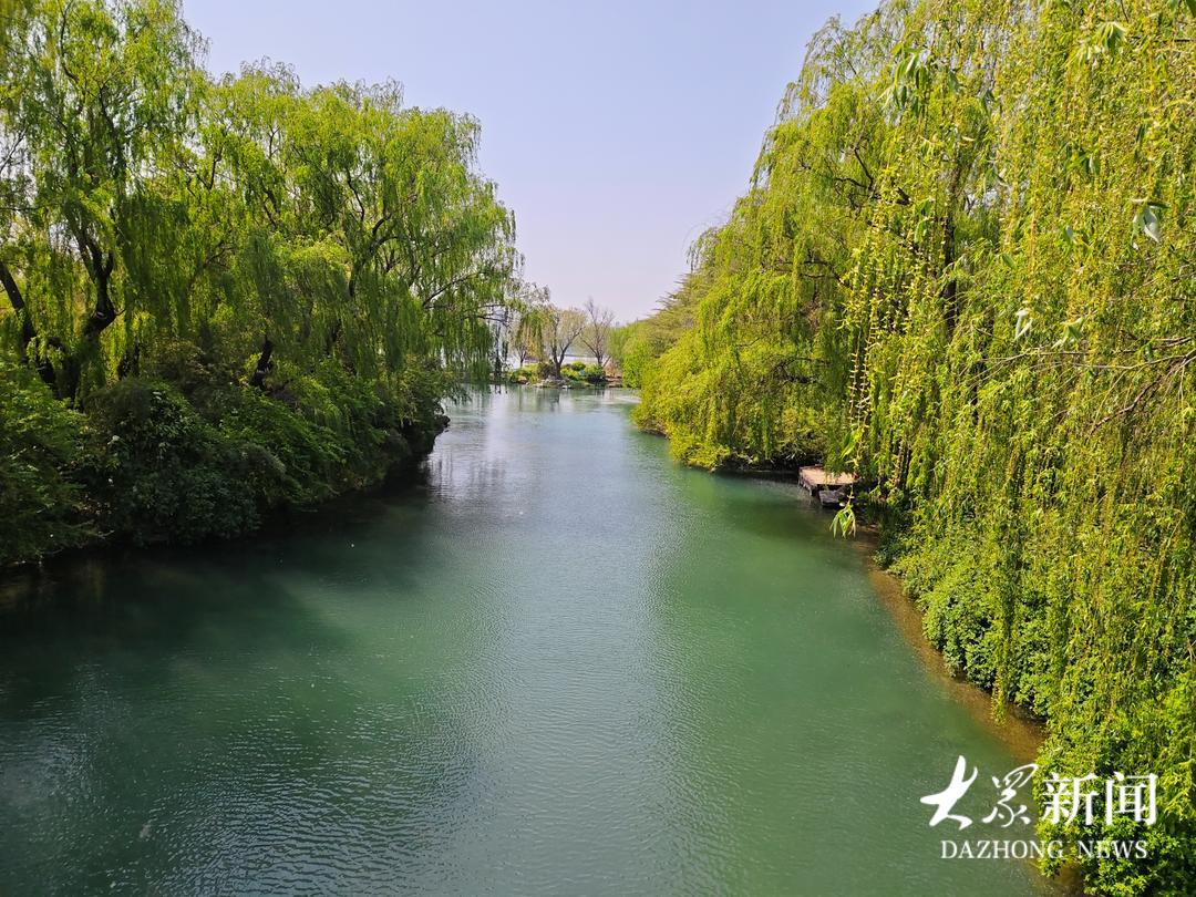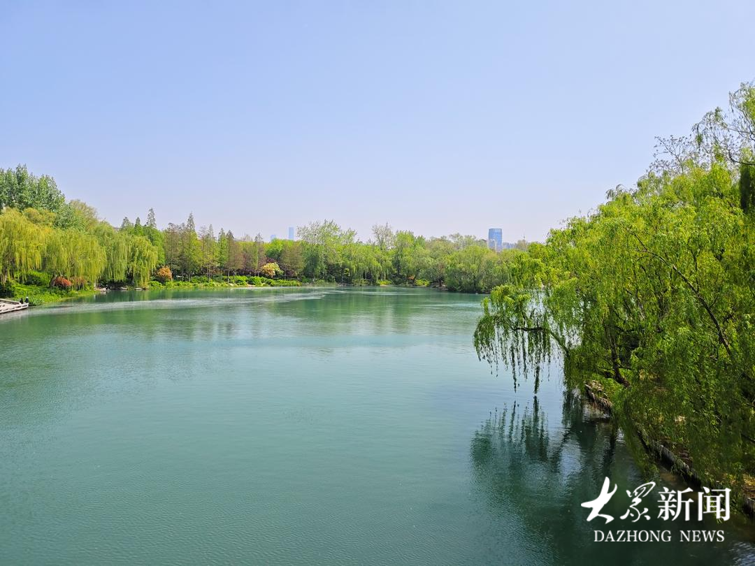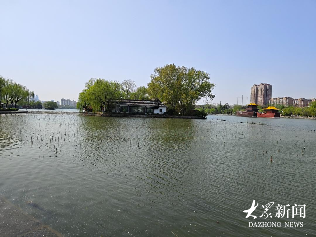 走进大明湖景区,首先映入眼帘的便是那一汪碧水。春风吹皱湖面,波光粼粼间,湖水显得格外清澈通透,倒映着岸边的垂柳与亭台。