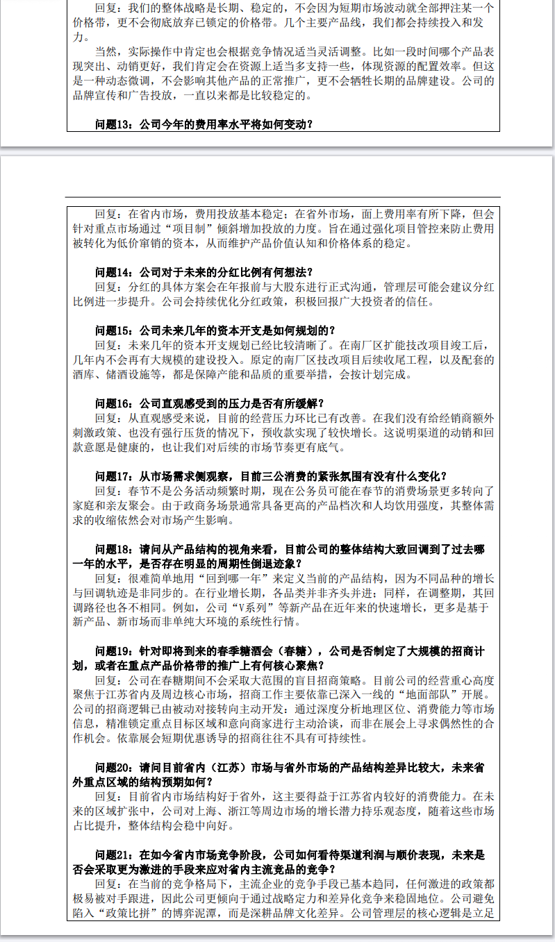今世缘管理层28个关键问答实录