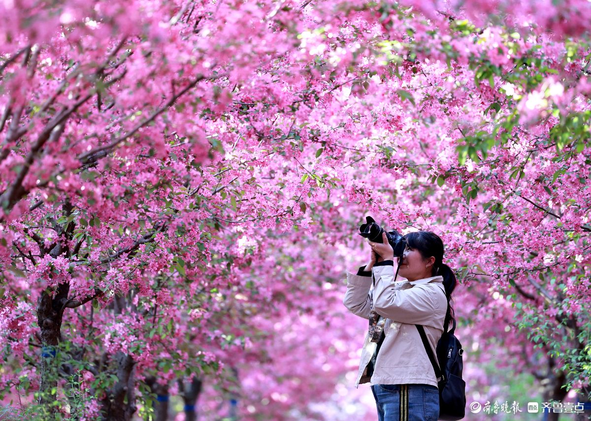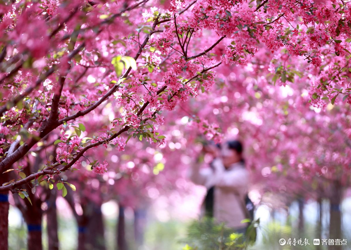 4月6日,临沂市蒙阴县垛庄镇一处苗木基地内,海棠迎来盛花期。千株万株海棠竞相比美,繁花似锦,香气袭人。市民漫步花间,用镜头定格春日生态画卷,尽享踏青赏花的惬意与悠然。公茂栋摄
