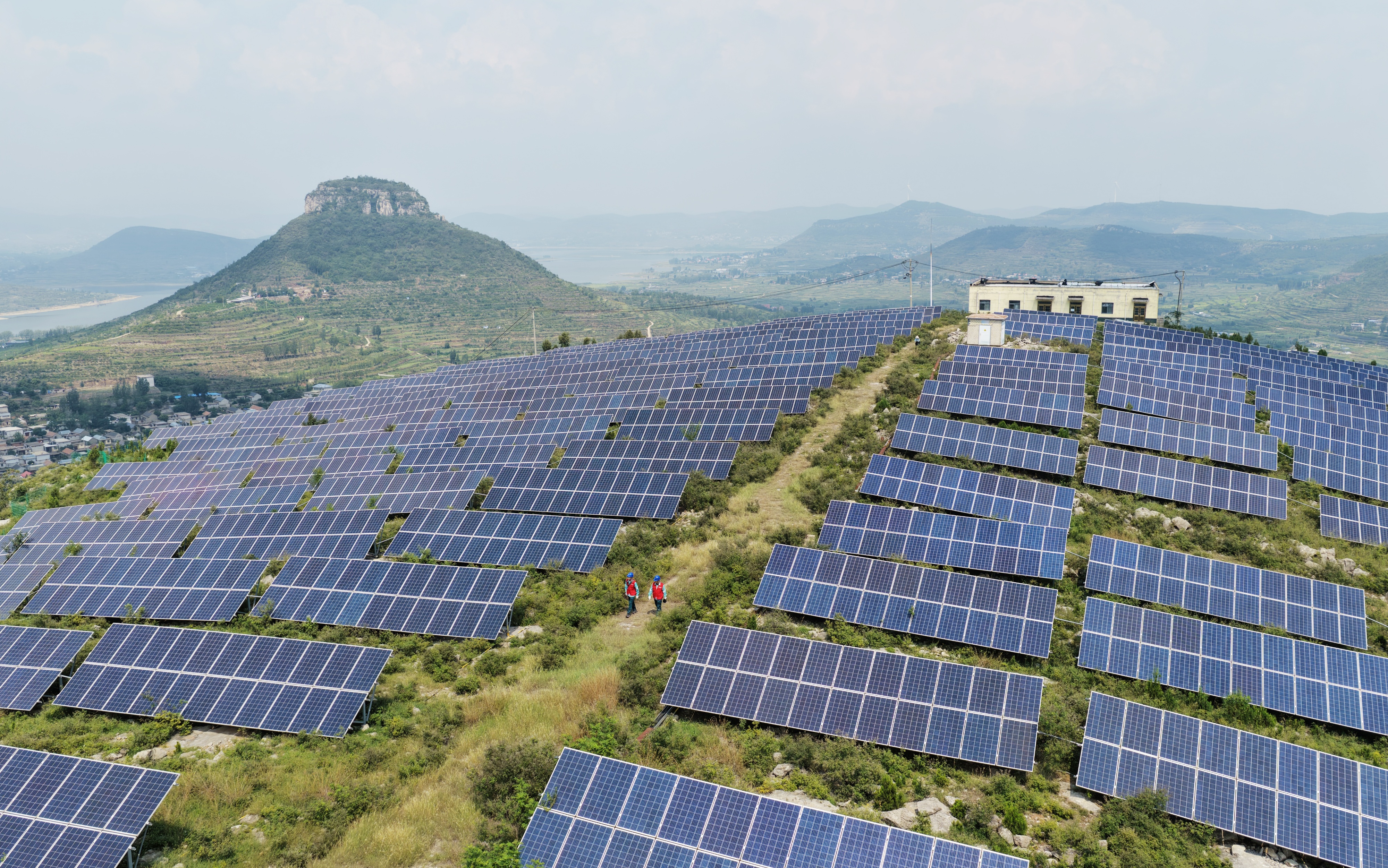 9月1日,山东临沂费县供电公司新庄供电所员工宋子阳、检查安装在山顶的益民光伏电站设备运行情况,为绿色低碳高质量发展提供坚强保障。